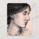 Postal cuadrada del dibujo a tinta de Virginia Woolf coloreado ... teñido / coloreado.
