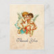 Tarjeta postal de agradecimiento con un fondo estilo pergamino falso vintage. Superpuestos en la parte superior hay 2 ángeles querubines, uno susurrando al otro. Mensaje personalizado en la parte posterior.