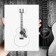 Postal Dibujo de línea monocroma Música de guitarra acúst
