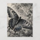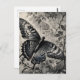 Mariposa blanca y negra con ramas de árbol y hojas dibujando.
