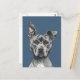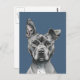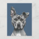 Este es un retrato de un bulldog de foso gris con blanco en el pecho. Tiene una oreja de pie. Él tiene una mirada real en su cara. Está en un lado voluminoso y tiene una cara grande y muscular. Se dibujó con lápiz y después se coloreó digitalmente con pastel.