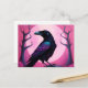 Postal Dibujo de un cuervo sobre fondo rosado neón
