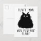 Gracioso dibujo de gato negro con el texto "Fluff You Fluffin' Fluff".