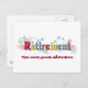 Letras brillantemente coloreadas que deletrean el "retiro" con diseño floral impreso en letras. Follaje de la flor del remolino y círculos punteados alrededor de las letras. Un recuerdo hermoso para alguien que se está retirando. Modifique para requisitos particulares añadiendo su propio texto bajo fraseología del retiro.