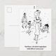 Postal humorística vintage sobre la relación entre hombres y mujeres.