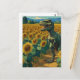 Postal Dino T-Rex en el campo de girasol Van Gogh