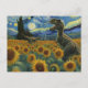 Postal Dinos T-Rex en los girasoles nocturnos Van Gogh St