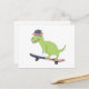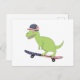 Una ilustración adorable de un dinosaurio Tyrannosaurus Rex verde en monopatín con un sombrero y monopatín de la bandera americana. Regalo ideal de cumpleaños, decoración de guardería, arte para habitación de niños, decoración del hogar, vuelta al cole o cualquier otra ocasión especial.