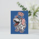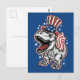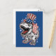 Dinosaurio Patriótico Americano, un ilustracion cautivador y vibrante de un diseño de arte vectorial, caricaturizado, de dinosaurio feroz con un lindo y juguetón. El dinosaurio se representa con la boca abierta para revelar sus dientes lindos para los niños. Encaramado sobre su cabeza hay un sombrero de cabeza divertidamente patriótico adornado con las estrellas y rayas de la bandera estadounidense. El dinosaurio en sí mismo se representa en un blanco llamativo, contrastando marcadamente con el fondo negro. El gorra, con rayas rojas y blancas y estrellas blancas en un campo azul, aporta un toque patriótico inesperado y caprichoso. La figura ilustrada y el gorra están definidos por contornos audaces que atraen la atención del espectador, creando una atmósfera lúdica pero animada. La combinación única de elementos en este diseño resulta en una imagen humorística y animada que sin duda encantará a los espectadores.