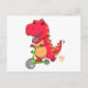 Postal Dinosaurio T-rex montando un ciclomotor verde