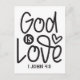Postal Dios es amor. 1 Escritura de la Biblia de Juan 4:8