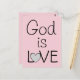 Esta es una hermosa postal color rosa claro con un hermoso mensaje impreso en letras grandes: 'Dios es AMOR'... La palabra AMOR tiene un corazón gris lindo en lugar de la letra "O". ¡Hermosa postal para enviar a todos los que amas!