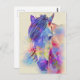 Postcard representa un hermoso diseño artístico de una cabeza de caballo con colores azules, púrpura, rojo, beige y más.