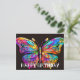 Esta vibrante y linda tarjeta de cumpleaños presenta una ilustración abstracta de una mariposa flotante. Por favor, no dude en personalizar el texto en el reverso de esta tarjeta.