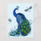 Postal Diseño clásico de pavo real y libélula