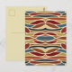 Postal postal impresa con Geometric Opaque Sned Glass Style Design retro arte pop de mediados de siglo original ilustracion de arte de TheFabricSeal impreso en tienda a petición en Zazzle.com #ZazzleMade https://www.zazzle.com/store/thefabricseal Este impresionante esquema de color suroeste americano presenta un minimalista estilo contemporáneo de mediados de siglo retro. Con una colorida paleta de pintura suroeste mezcla de marfil cálido, marrón clásico, siena quemada, siena cruda, tono sepia, ladrillo rojo pálido, china azul y marrón negro. La tienda tiene dos versiones de diseño, la original sin límites y esta otra versión de diseño con contornos de marfil cálidos para las diferentes formas geométricas.