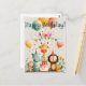 Traiga alegría y encanto al día especial de su hijo con nuestro adorable diseño de celebración de cumpleaños de animales. Esta encantadora obra de arte presenta una alegre reunión de animales lindos, cada uno con sombreros de fiesta festivos y rodeado de globos coloridos,