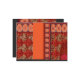 El diseño presenta un diseño textil detallado, probablemente destinado a tejidos o papel pintado. Estos son los detalles específicos: ・ Esquema de color: predominantemente naranja, rojo y blanco. ・ Tira vertical central: Un color naranja sólido baja por el medio. ・ Patrones flanqueantes: motivos florales intrincados y detalles ornamentales en tonos rojos, naranjas y blancos, con algunos elementos de encaje. ・ Antecedentes: Una mirada angustiada con salpicaduras de rojo sobre una base más oscura, dándole una sensación vintage. El diseño simétrico y la combinación de motivos florales y ornamentales lo hacen visualmente atractivo y adecuado para diversas aplicaciones en la moda o decoración interior.