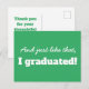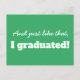 Un diseño minimalista de tipografía divertida en verde y blanco con una combinación de texto genial que dice: ¡Y así, me gradué! con una plantilla de texto en la parte posterior para que agregues tu texto personalizado en colores verde y blanco invertidos. #gracias
