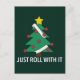 Funny tarjeta postal de los Navidades de Covid que dice "Sólo sigue adelante". Esta tarjeta de humor de papel higiénico coronavirus presenta un árbol de Navidad decorado con adornos Covid19 y papel higiénico sin rodar para una decoración de garland esta temporada de fiestas pandémicas.