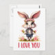 Postal Divertido Conejo de San Valentín Rosa Te Amo