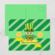 Deseo a un amigo un feliz Día de San Patricio. Este diseño presenta un diseño de rayas verdes con una lechuza y una pancarta con el lema "Feliz Día del Santo". El fondo verde del fondo es fácil de personalizar.