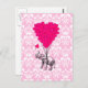 Personaliza este divertido y lindo elefante vintage sobre el patrón de damasco rosado de moda y globos con forma de corazón con tu nombre de texto o monograma para tu ser querido, novia o valentina.