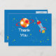 La fiesta de cumpleaños de este chico gracias postal tiene un tema de cohete espacial. Hay un cohete volando en el exterior con una luna y estrellas flotando por todas partes. Puede personalizar esto fácilmente con su mensaje de agradecimiento en la parte posterior. Gráficos de Blackleaf Studios en MyGrafico