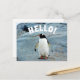 Graciosa postal de hola con una linda foto de pingüino para un divertido saludo para los niños o los adultos amantes de los pingüinos.