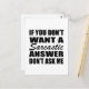 Si te gustan las citas sarcásticas graciosas o los grandes diseños humorísticos, entonces este eslogan original "Si no quieres una respuesta sarcástica, no me preguntes" es para ti. ¡Es un gran regalo para tu familia, amigos o para ti mismo! Este diseño es ideal para todo aquel que ame el sarcasmo y el humor. Si te gusta esta cita graciosa, echa un vistazo a otras obras similares en la tienda Omitay. Mantente a salvo y gracias por apoyar a un artista local.
