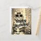 Foto divertida de gato fiestero con gafas de sol sosteniendo un vaso de bebida. Una forma única y divertida de desearle feliz cumpleaños a alguien.