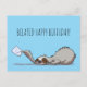 Un perezoso divertido que llega tarde con una tarjeta postal de cumpleaños atrasada. Utilice "Personalizar esta plantilla" para modificar el texto "¡FELIZ CUMPLEAÑOS ATRASADO!" y crear una tarjeta única y personalizada. Con un dibujo animado de un perezoso lindo y soñoliento que se arrastra hacia la vista con un sobre de cumpleaños en su garra extendida. ¡Mejor tarde que nunca!