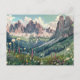 Descubra la belleza de los Dolomitas con este afiche/postal de viaje retro. Este diseño, que presenta picos escalonados y exuberantes valles, refleja los impresionantes paisajes de Italia. Ideal para los amantes de la naturaleza y los amantes del arte vintage.