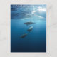 Asombrosa fotografía submarina de una familia de delfines jugando bajo la superficie.