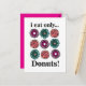 Donas Como Solo Donas Tarjeta postal diseño original de Nisha Prabhu. Indulge tu dulce tentación con este encantador diseño de tarjeta postal, '¡Donas Como Solo Donas!'. Perfecta para amantes de la repostería y entusiastas de las donas, esta tarjeta vibrante y divertida celebra la alegría del dulce favorito de todos. Con ilustraciones apetitosas de donas coloridas cubiertas con sprinkles, glaseado y más, es una forma caprichosa de compartir tu amor por estos dulces placeres. Ya sea que estés enviando una nota dulce a un compañero aficionado a las donas o simplemente alegrando el día de alguien, esta tarjeta postal seguramente traerá sonrisas y antojos. Ideal para invitaciones a fiestas, notas de agradecimiento o simplemente porque sí, es un encantador complemento para cualquier colección. ¡Toma esta divertida tarjeta postal y difunde la alegría de las