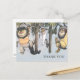 Comparte tu gratitud en estilo de libro ilustrado con esta tarjeta postal de agradecimiento de baby shower personalizable "Donde las Cosas Salvajes Están". Con Max en su corona junto a las Cosas Salvajes en una escena forestal divertida, este diseño captura el espíritu caprichoso y aventurero del cuento querido. Perfecta para agradecer a los invitados después de un baby shower temático, esta tarjeta agrega un toque mágico y personal a tu mensaje sincero.