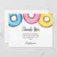 Esta linda tarjeta Baby Shower Gracias cuenta con donuts acuarelas en rosa, azul y amarillo. Perfecto para una celebración de bebés sin diferencias de género. Personalizar con tus detalles. Porque creamos nuestra propia obra de arte no encontrarás esta imagen exacta de otros diseñadores. Acuarela original © Michele Davies.