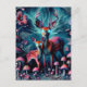 Postal Dos adorables ciervos psicodélicos en un bosque de