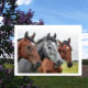 Postal Dos bahías y un gris, tres caballos en fila