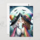 Una linda pareja de brujas comparte un beso en sus trajes de arco iris