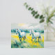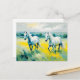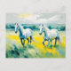 Postal Dos caballos blancos recorriendo flores amarillas
