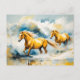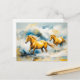 pintura expresiva al estilo del aceite de dos caballos corriendo a través de aguas poco profundas. Las pinceladas de fluido enfatizan su velocidad y gracia en el fondo del océano.