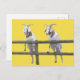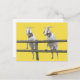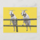 Dos cabras paradas y mirando por encima de la cerca en un fondo amarillo.