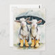 Dos adorables cabras negras viciadas tienen puestas sus botas de lluvia amarillas y se paran bajo un paraguas fantasía acuarela arte