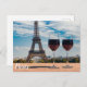 Dos copas de vino en la torre Eiffel y el paisaje de París.