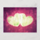 Dos productos Personalizados Hearts con el diseño de arte fotográfico digital Save the Date con dos corazones brillantes en un fondo rosa brillante.