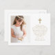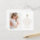 Esta clásica tarjeta de agradecimiento de Primera Comunión católica presenta una foto en la parte frontal con una simple cruz y tipografía de color dorado sobre un fondo blanco, con un dulce mensaje de agradecimiento editable. La parte trasera incluye una segunda foto y la dirección de remite. Esta tarjeta de agradecimiento de Primera Comunión es editable para diversas ocasiones religiosas cristianas, o para actualizar a tu propio mensaje personal de agradecimiento.