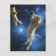 Postal Dos Gatos Espaciales Flotando Alrededor De La Gala