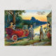 Dos mujeres en el automóvil, con dos hombres parados al lado, otro automóvil a través del río, un biplano por encima y las ruinas de un molino de agua a la derecha. Irlanda, H. C., artista, Creado / Publicado Boston : Walker Lith. y Pub. Co., Boston, [1910]