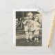 Postal Dos niños con una muñeca afuera